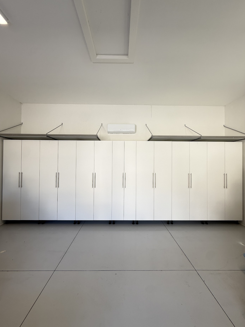 See how we upgraded garage storage in Venice, FL with white commercial-grade cabinets, bike storage racks, and a clean, modern layout designed for functionality.